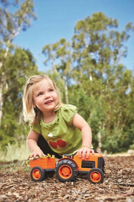 Scopri il mondo del divertimento agricolo con il trattore arancione con rimorchio del marchio Green Toys. Questo giocattolo è realizzato in plastica riciclata da bottiglie del latte, garantendo sia robustezza che rispetto per il nostro pianeta. Adatto per interni ed esterni, il trattore offre infinite ore di divertimento per bambini dai 12 mesi in su.