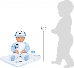 Bambola Beno è il compagno ideale per tutti i bambini che amano i cani. Questa bambola realistica è vestita con un adorabile abito blu e bianco con motivi di cucciolo e viene fornita con un biberon e un ciuccio.