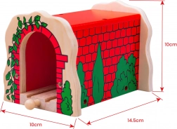 Aggiungi una nuova dimensione al tuo set di trenini con la galleria in legno. È realizzata con legno di alta qualità, con una costruzione solida e un design attraente che ricorda una struttura in mattoni coperta da vegetazione.