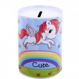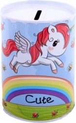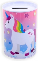 Questo salvadanaio in metallo con motivo unicorno è ideale per i bambini che vogliono iniziare a risparmiare per il loro giocattolo preferito. Si distingue per il design decorativo e l'apertura pratica sulla parte superiore per l'inserimento delle monete.