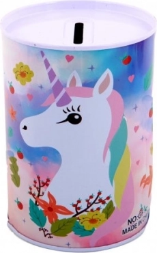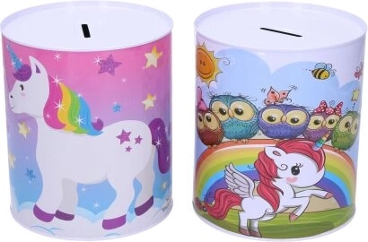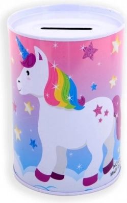 Il salvadanaio in metallo con motivo unicorno non è solo un pratico strumento per il risparmio, ma anche un bellissimo elemento decorativo per la stanza dei bambini. Le sue illustrazioni colorate di unicorni, arcobaleni e stelle delizieranno ogni bambino.