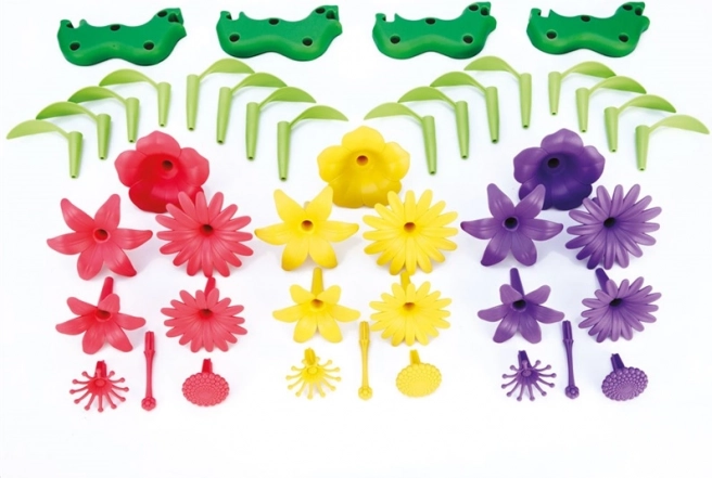 Grazie ai pezzi intercambiabili, i bambini possono creare infinite combinazioni di fiori, steli e foglie. Ogni composizione è unica e stimola fantasia e motricità fine.
