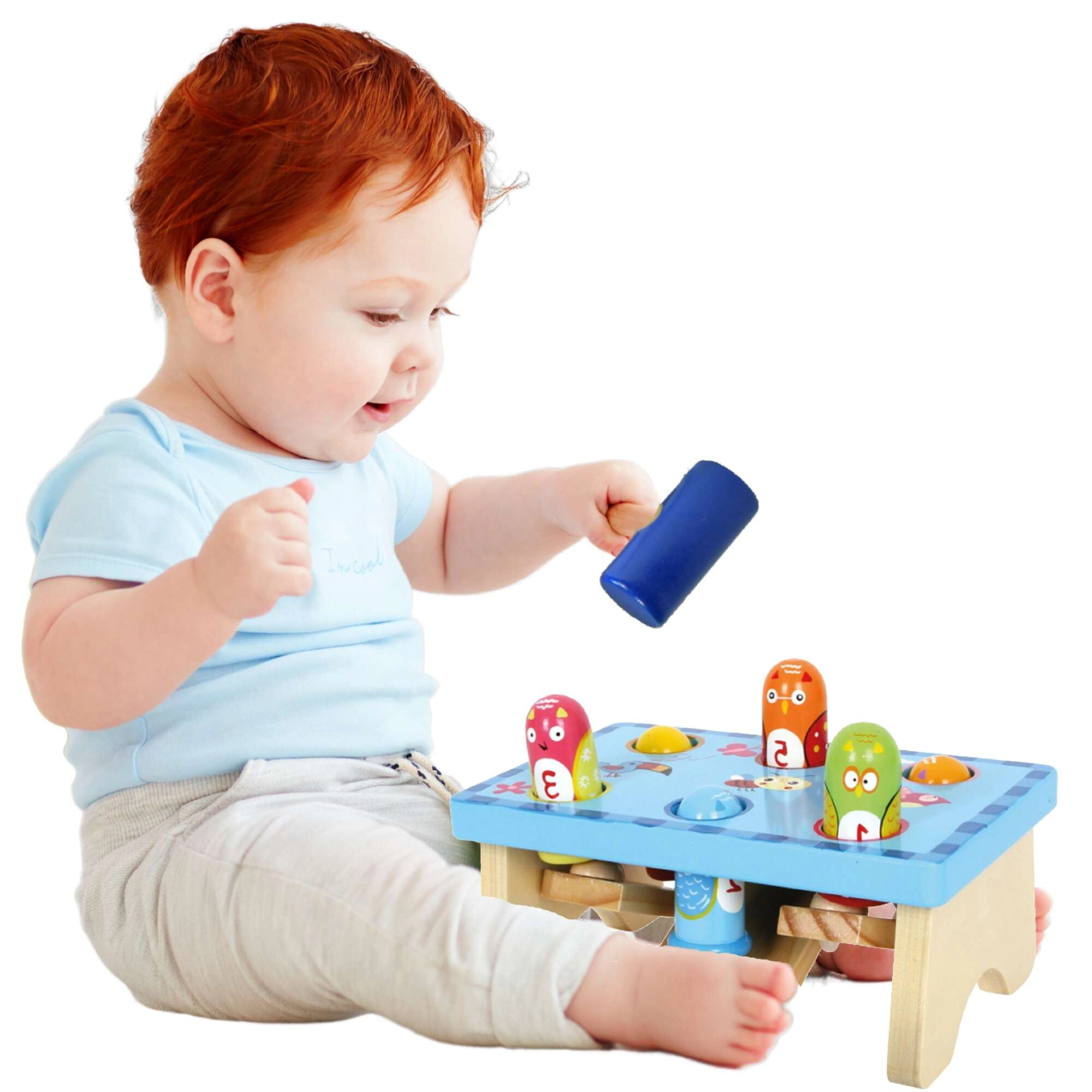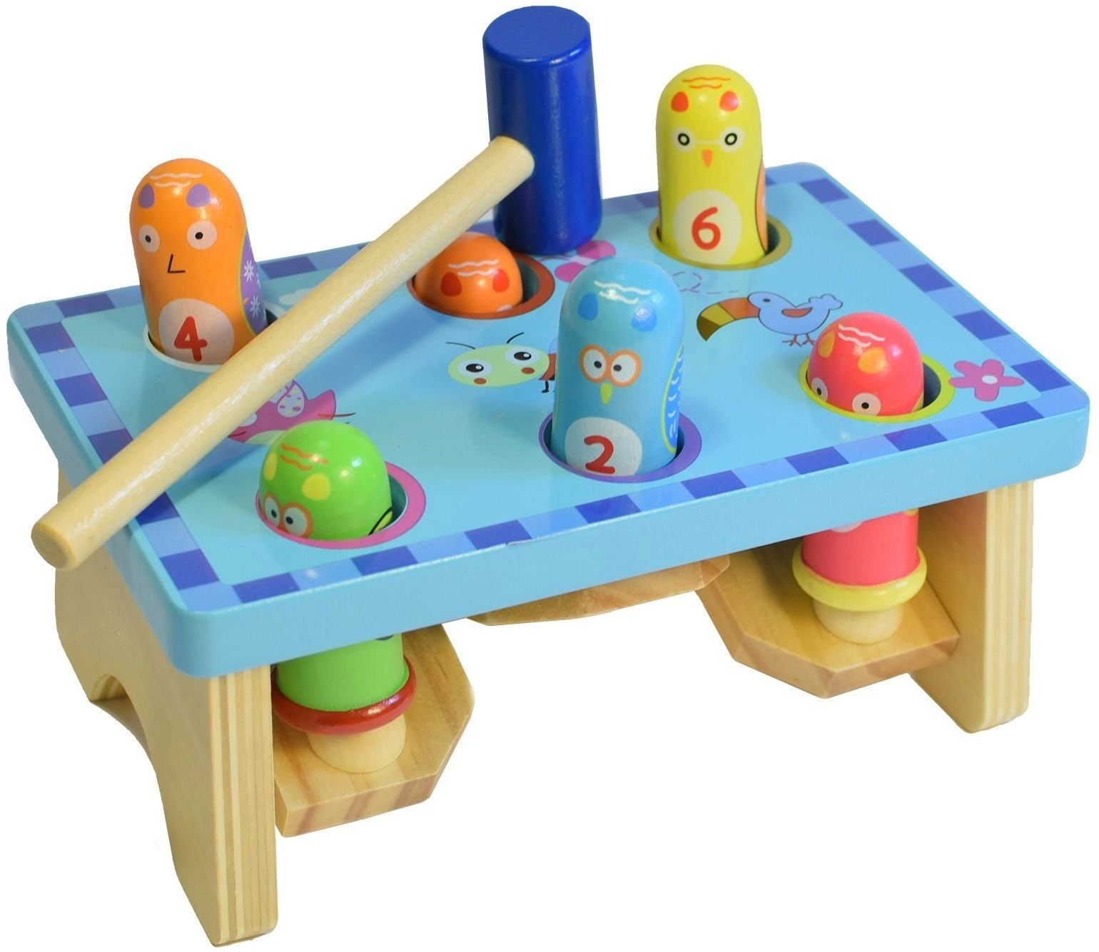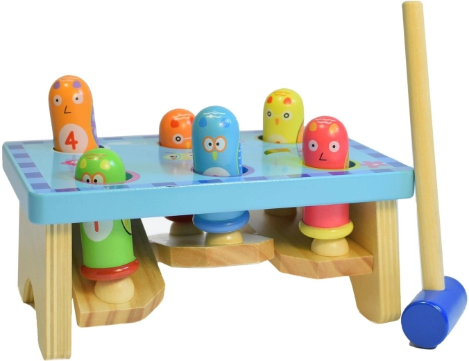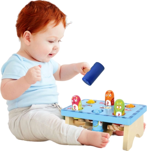 Grazie alla lavorazione solida e al martelletto ergonomico, i bambini esercitano la motricità fine, la coordinazione dei movimenti e la pazienza. I pioli colorati e numerati aiutano nel riconoscimento dei colori e nel conteggio, unendo il gioco all’apprendimento in modo naturale.