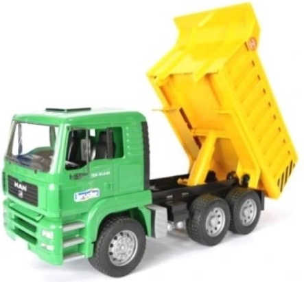 Il robusto ribaltabile BRUDER MAN per piccoli costruttori offre funzioni realistiche e una struttura resistente. I bambini apprezzeranno la cabina ribaltabile con vista sul motore, il cassone ribaltabile funzionale, i pneumatici morbidi profilati e il dispositivo di traino per ulteriori accessori. Prodotto in Germania in plastica di alta qualità.