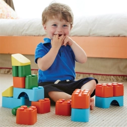 Scoprite il divertimento e il design sostenibile in un unico set. I mattoncini Green Toys sono leggeri ma robusti e resistenti, realizzati negli USA con plastica riciclata da bottiglie del latte. I bambini possono costruire castelli, torri e creazioni di fantasia senza il rischio di pezzi piccoli o spigoli vivi.