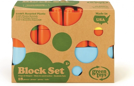 Set di costruzione ecologico Green Toys – 18 mattoncini sicuri in plastica riciclata. Leggeri, robusti, senza PVC, BPA e ftalati. Adatti dai 6 mesi.