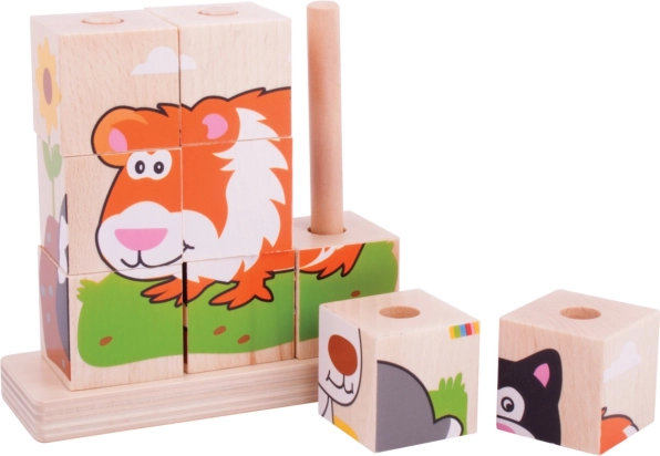 I cubi in legno ad incastro Bigjigs Baby sono un’ottima scelta per i primi puzzle e incastri. I bambini allenano la presa, la destrezza delle dita e la percezione visiva mentre cercano i lati corretti dei cubi e li inseriscono sui pioli. Le illustrazioni colorate degli animaletti invogliano a giocare più volte e favoriscono la concentrazione.