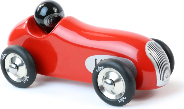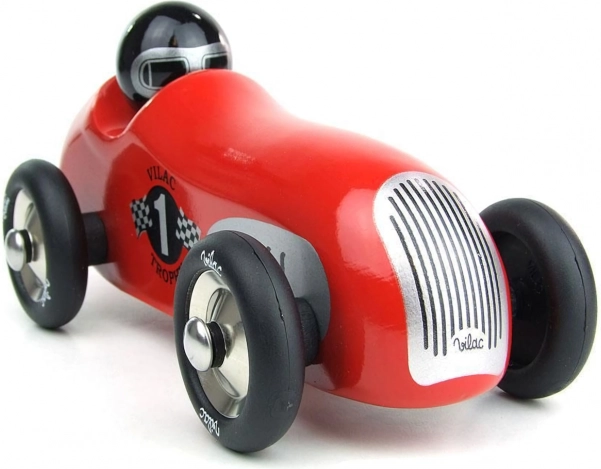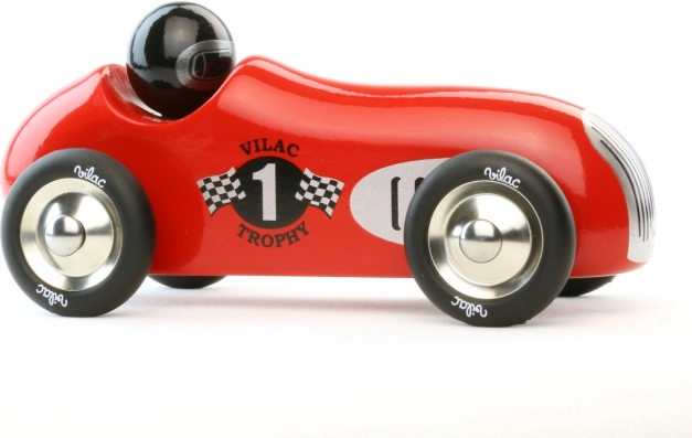 Scopri il fascino dell'auto da corsa storico rossa del marchio Vilac. Questa macchina è realizzata in legno laccato con dettagli in metallo e ruote gommate, il che garantisce un movimento fluido. È progettata sia per giocare che come elemento decorativo in interni di bambini e adulti.