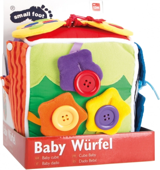 Cubo attivo in peluche di Small Foot è un giocattolo ideale per lo sviluppo della motricità fine nei bambini. Include vari tipi di chiusure come bottoni, cerniere e lacci, che supportano l'esplorazione tattile.
