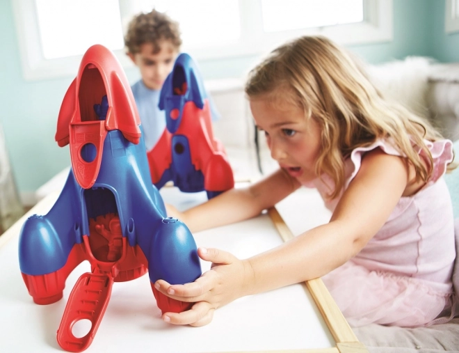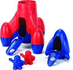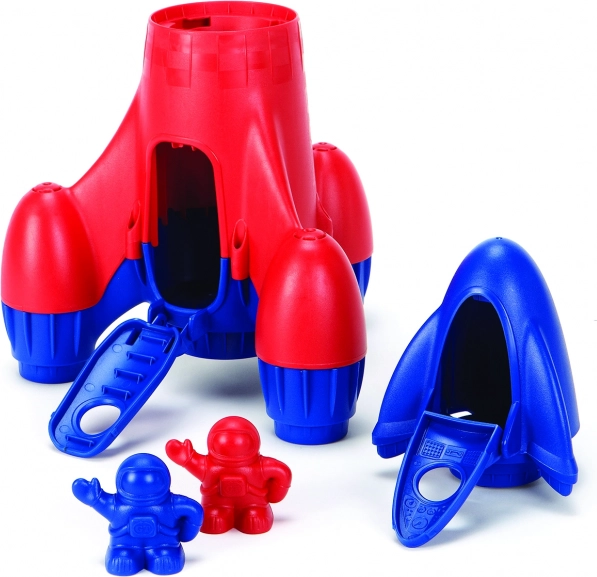 Parti per un'avventura nello spazio con il giocattolo GREEN TOYS – razzo blu in plastica riciclata da bottiglie del latte. Sicuro per i bambini, senza PVC, BPA e ftalati, con cabina di pilotaggio removibile, porte apribili e due astronauti per un gioco creativo in casa, sulla sabbia e in acqua.