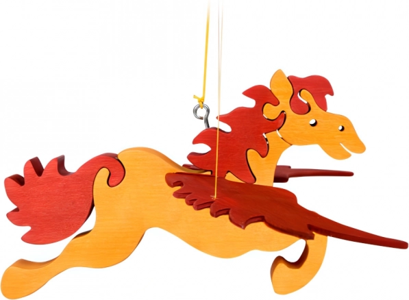 Incantevole decorazione in legno per la cameretta – un cavallo volante che, tirando il cordino, inizia a “battere le ali”. Legno levigato a mano, design sicuro e facile da appendere fanno di questa decorazione sospesa un complemento affascinante sopra la culla o nell’angolo dei giochi.