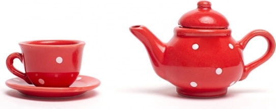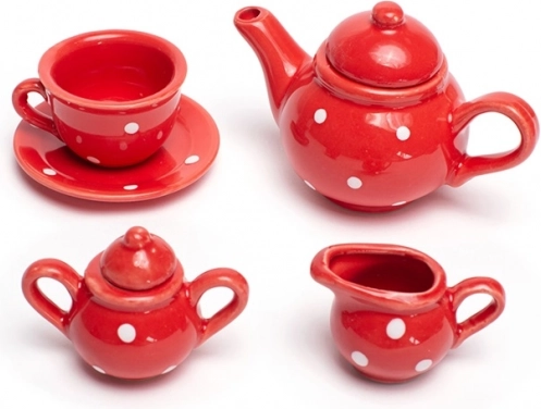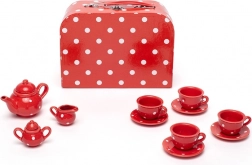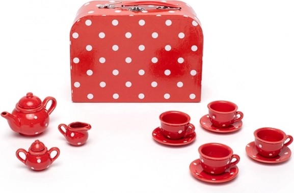 Organizza il tè perfetto per bambini con questo incantevole set rosso a pois bianchi. Il set include tutto ciò di cui i piccoli padroni di casa hanno bisogno – teiera, 4 tazze con piattini, zuccheriera e lattiera. Dopo il gioco, tutto si ripone facilmente nel robusto valigetto, ideale anche per i viaggi. Realizzato con materiali di qualità e conforme alle norme di sicurezza europee.