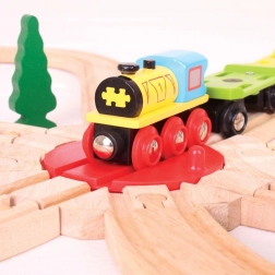 La piattaforma girevole Bigjigs Rail è realizzata con materiali naturali ottenuti in modo responsabile ed è pienamente compatibile con la maggior parte delle ferrovie in legno comunemente disponibili. La lavorazione precisa garantisce un movimento fluido e un facile collegamento dei binari.
