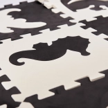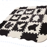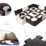 Grande puzzle in schiuma nei colori nero e bianco con elementi rimovibili e forme interessanti assicura un grande divertimento per il bambino che scopre il mondo. Grazie al puzzle è possibile creare uno spazio sicuro per giocare, dove la morbida schiuma ammortizza tutte le cadute.