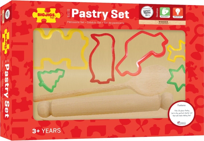Scopri il divertimento della cottura al forno con il set per bambini BIGJIGS – un kit pratico e sicuro per i primi passi in cucina. Il set include un mattarello in legno, un tagliere, un cucchiaio, una spatola e 6 stampini colorati (stella, auto, cane, albero di Natale, trenino, pinguino). Il set da 10 pezzi stimola la creatività e la motricità fine, è adatto dai 3 anni e rispetta le norme europee di sicurezza vigenti.