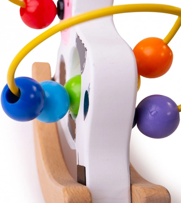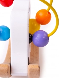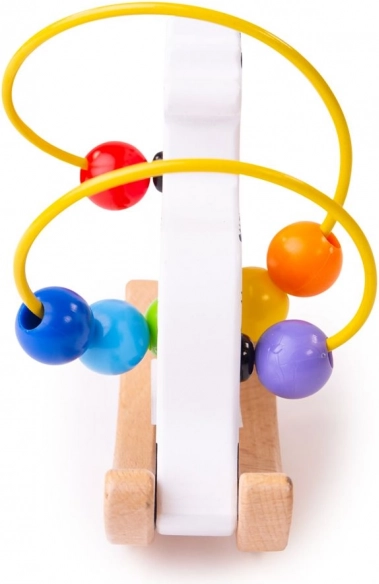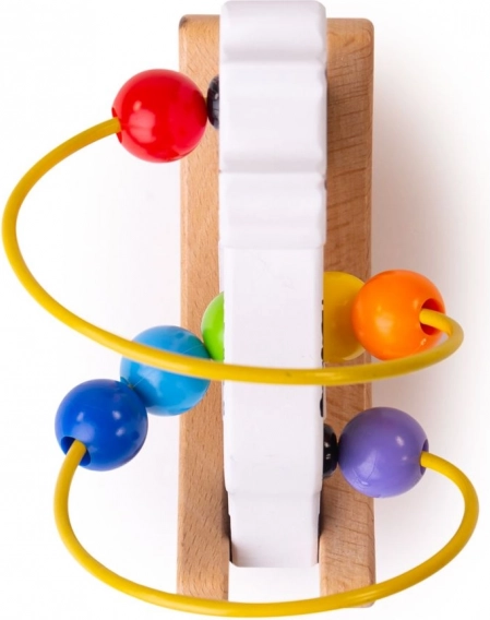 Grazie alla solida base in legno e ai bordi levigati, il giocattolo è resistente e piacevole al tatto. Le perline colorate stimolano i sensi e favoriscono il riconoscimento dei colori. Ideale per la cameretta e come attività da viaggio.