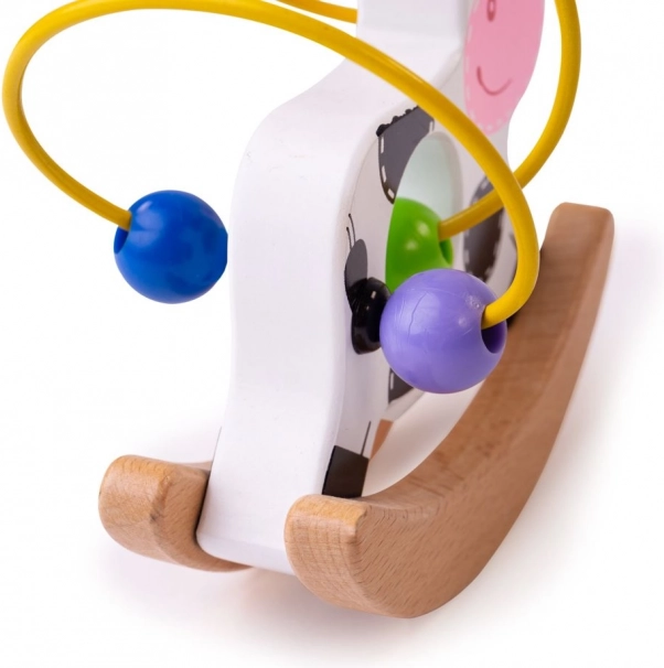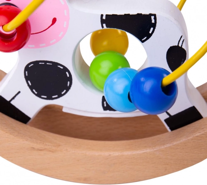 Questo compatto labirinto motorico dal design della simpatica mucca offre un gioco sicuro e stimolante ai bambini dai 12 mesi. Far scorrere le perline lungo il solido filo metallico allena la precisione della presa, l’agilità delle dita e la coordinazione dei movimenti, mentre la base basculante mantiene l’attenzione e sviluppa la percezione dell’equilibrio.