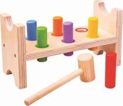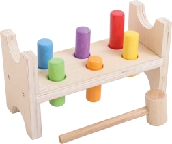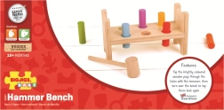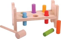 Divertente e sicura panca martella in legno per i più piccoli, sviluppa la coordinazione mano–occhio e la motricità fine. Grazie ai pioli colorati e al robusto martelletto in legno, i bambini allenano precisione e forza della presa. Il giocattolo ha bordi arrotondati, è realizzato in legno di alta qualità e soddisfa le norme di sicurezza europee.
