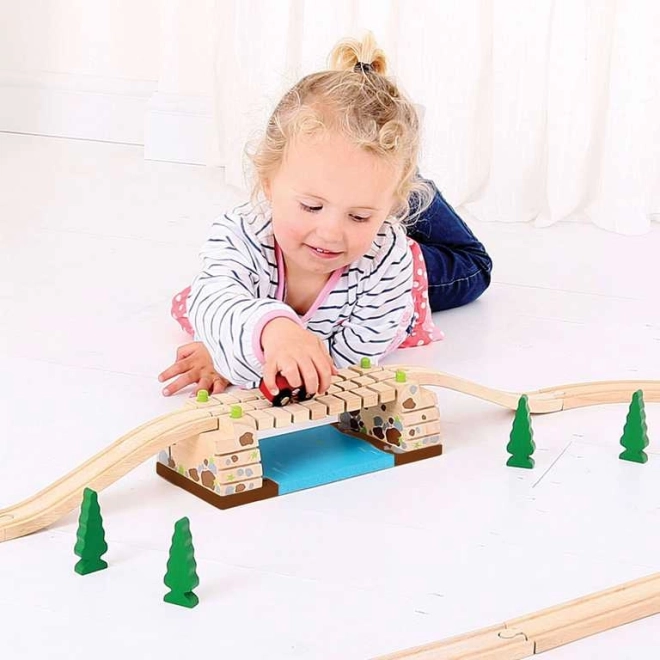 Il ponte è compatibile con tutte le comuni ferrovie in legno e aggiunge autenticità grazie ai suoni emessi dal treno in attraversamento. Supporta ottimamente l'immaginazione, la destrezza e la coordinazione dei bambini.