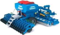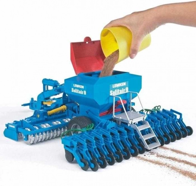 Modello realistico della seminatrice LEMKEN Solitair 9 in scala 1:16 del marchio Bruder, ricco di dettagli funzionali per un gioco autentico. Dispone di un serbatoio per semi riempibile, braccio e scaletta ribaltabili, dischi mobili e timone girevole a 180°. È compatibile con i trattori Bruder serie 20xx, 21xx e 30xx ed è realizzato in plastica di qualità, prodotto in Germania.