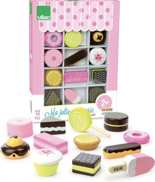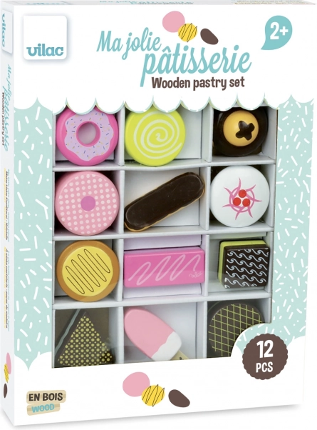 Regalate ai piccoli pasticceri e cuochi la gioia del gioco con il set di dolcetti in legno VILAC. I pasticcini e le bontà colorate sembrano veri, sono perfetti per la cucina giocattolo e per giocare al negozio, e sviluppano piacevolmente la fantasia e la motricità fine.