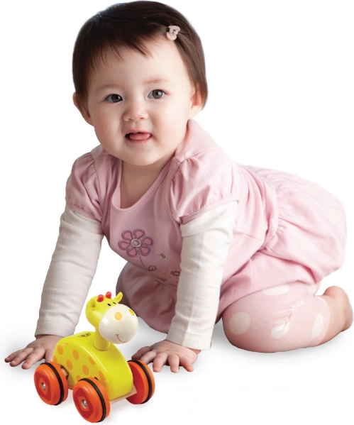 Questa allegra giraffa con ruote è il veicolo perfetto per le prime manine. Inclinando il giocattolo il bambino cambia facilmente la direzione di marcia, favorendo naturalmente la coordinazione occhio-mano e il gioco attivo. Gli anelli in gomma sulle ruote garantiscono un movimento fluido e silenzioso su diverse superfici.