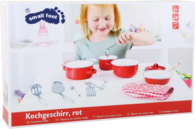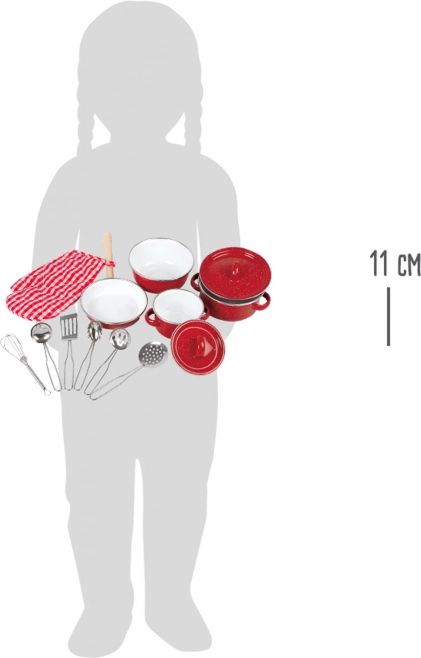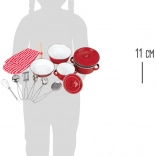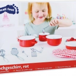 Questo splendido set di stoviglie in metallo rosso è perfetto per tutti i piccoli cuochi. Include vari accessori da cucina, come pentola, padella, presina, e altri utensili che aiutano i bambini a sentirsi come veri chef. È ideale per giochi interattivi e sviluppo del pensiero creativo.