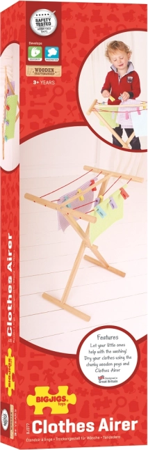 Cercate il complemento perfetto per la sala giochi dei vostri bambini? Lo stendibiancheria in legno Bigjigs Toys è progettato per fornire ai bambini ore di gioco divertente e allo stesso tempo sviluppare la loro motricità fine. Quando i piccoli simulano di stendere i vestiti come fanno i genitori, oltre a divertirsi, imparano anche compiti quotidiani.