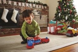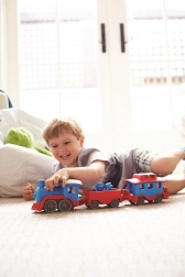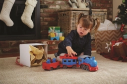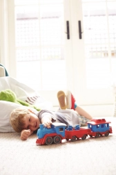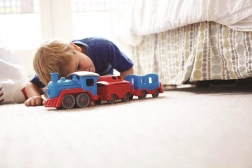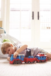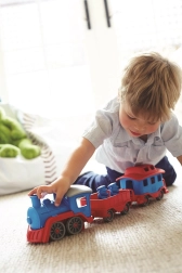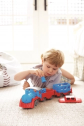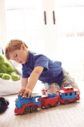 Tutti a bordo! Questo robusto treno del marchio Green Toys con locomotiva e due vagoni offre un gioco creativo in casa e all’aperto. È realizzato in plastica riciclata al 100% da bottiglie del latte, non contiene BPA, PVC né ftalati e non ha assi in metallo né vernici esterne. Inclusi anche due orsetti capotreno e tutti i pezzi si possono facilmente staccare e lavare in lavastoviglie.