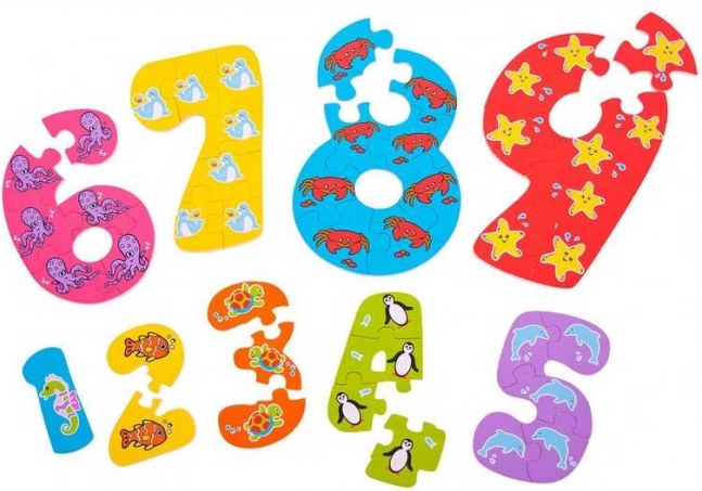 - Numeri 1–9 sotto forma di puzzle – ogni numero è un mini puzzle da 1 a 9 pezzi.