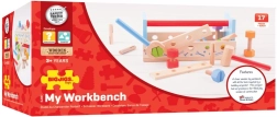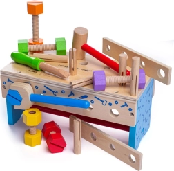 Il giocattolo Bigjigs Toys offre un banco da lavoro in legno di qualità con utensili, che in modo divertente supporta le abilità creative e lo sviluppo motorio nei bambini. Include un martello, una chiave e diversi bulloni che i bambini possono usare facilmente per varie attività costruttive.