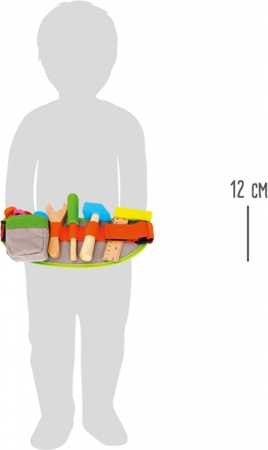 Cintura per attrezzi regolabile per bambini del marchio Small Foot è dotata di diversi attrezzi per un gioco divertente e educativo. Grazie alla lunghezza variabile della cintura (41-103 cm), ogni piccolo artigiano può facilmente adattarla. Il set include: martello, cacciavite, chiave, squadra, viti e dadi.