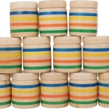12 barattoli in legno con bande colorate offrono un gioco esteticamente piacevole e al tempo stesso pratico, resistente e duraturo.