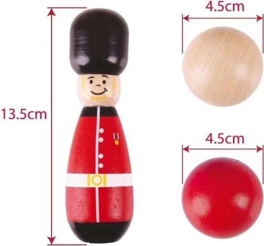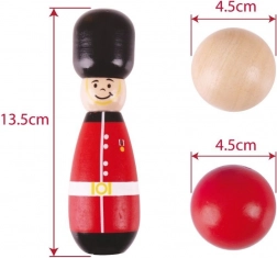 Goditi il classico gioco di bowling con birilli che amano cadere e raddrizzarsi. Sei birilli in legno e una palla da bowling in legno sono strumenti eccellenti per lo sviluppo di destrezza e coordinazione. Il set includes: