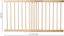 Questo cancelletto universale in legno di abete di qualità è progettato per separare in modo sicuro gli spazi domestici. La larghezza 72–122 cm consente l’installazione nella maggior parte dei passaggi standard e sulle scale. I bordi arrotondati e la superficie accuratamente levigata aumentano sicurezza e comfort nell’uso quotidiano.