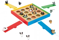 Un piccolo e divertente gioco di legno che combina tensione, abilità e strategia. Adatto ai bambini dai 4 anni in su. I topolini di legno di diversi colori e quattro altalene aspettano la tua mira precisa.