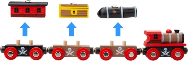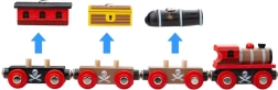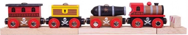 Treno dei pirati di Bigjigs Rail è la scelta ideale per i piccoli avventurieri. Questo set include una locomotiva e tre vagoni dettagliati con collegamenti magnetici classici. Compatibile con tutti i sistemi ferroviari in legno.
