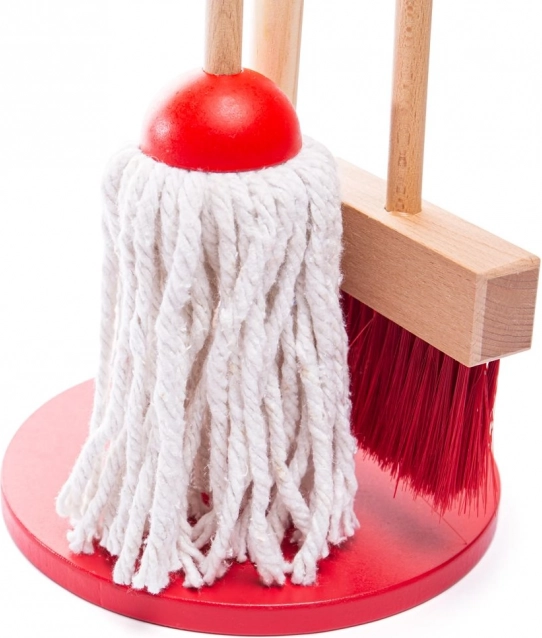 - Mocio, scopa, paletta, spazzola, supporto in legno