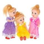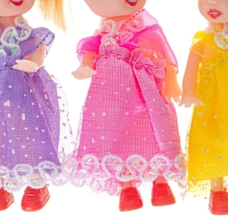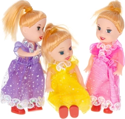 Vi presentiamo un set di tre splendide bambole, ideali per il divertimento nella casa delle bambole! Misurando 10 cm, si adattano perfettamente a tutte le stanze della casa. Grazie ai loro abiti sgargianti - rosa, giallo e viola con scarpe rosse - ogni spazio sembra creato su misura per loro. Queste bambole offrono un'opportunità perfetta per sviluppare la creatività dei bambini, favorendo il pensiero creativo e aiutando a sviluppare la motricità fine.