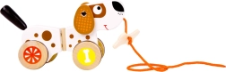 Delizioso cane da traino che sviluppa la coordinazione e le capacità motorie dei bambini in modo divertente. Grazie agli anelli di gomma sulle ruote, è un compagno di gioco silenzioso e amichevole.