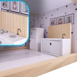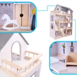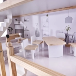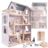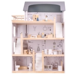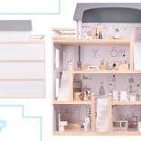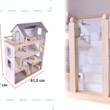 La casa ha fino a quattro piani e offre tantissimo spazio per giocare! La terrazza in legno all’ultimo piano aggiunge fascino all’intera casa. Tra le numerose stanze si trovano un bagno, uno studio, un soggiorno, una sala da pranzo con angolo cottura e una camera da letto. Ognuna è completamente arredata e pronta ad accogliere una nuova famiglia di bambole. Grazie alle dimensioni generose, all’interno possono entrare non solo le bambole più piccole, quindi non dovete temere che il compagno preferito del vostro bambino resti fuori dal divertimento!