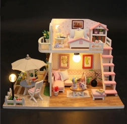 Casetta per bambole in legno da assemblare con LED, 19,5 cm