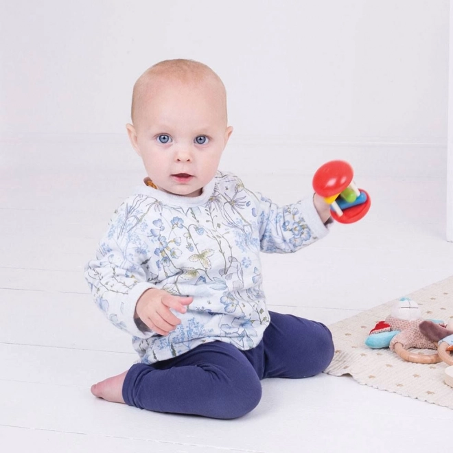 Il cilindro arcobaleno Bigjigs Baby è un sonaglio in legno senza tempo, che affascina con colori vivaci e un suono piacevole. I tre blocchi colorati, quando rotola o viene scosso, oscillano e urtano delicatamente contro i supporti, incoraggiando il bambino a esplorare, afferrare e muoversi.