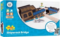 Il ponte del relitto della nave Bigjigs Rail dona al tuo mondo ferroviario un’atmosfera avventurosa. I due pezzi solidi si assemblano facilmente in un suggestivo passaggio sopraelevato o tunnel, così i trenini possono viaggiare sopra e attraverso il relitto decorato. Il tema dei pirati e delle onde marine stimola storie creative e ore di divertimento.