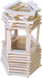 Le singole tavolette permettono di costruire liberamente torri, ponti e architetture personali. I bambini allenano fantasia, pazienza e motricità fine.