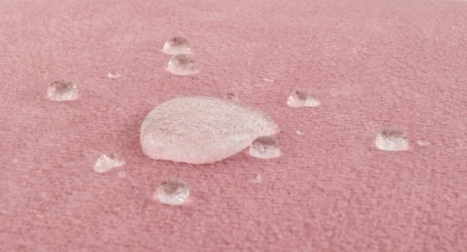 Il materiale vellutato CLEANABOO non assorbe immediatamente i liquidi: le bevande versate rimangono in gocce e si puliscono facilmente.