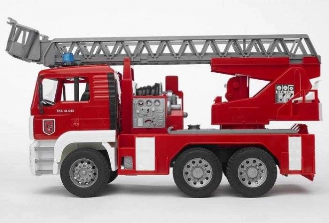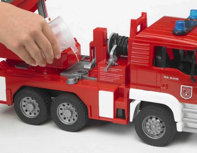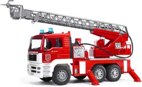 Camion dei pompieri MAN in scala 1:16, è un modello dettagliato e realisticamente progettato, dotato di una pompa dell'acqua funzionante, una scala estensibile di grandi dimensioni e un modulo multifunzionale con luci e suoni. Giocattolo perfetto per tutti i piccoli pompieri!