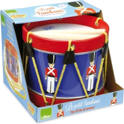 Sviluppa il senso musicale e il ritmo con questo tamburo per bambini VILAC di alta qualità. Il design colorato con motivo dei soldatini, due bacchette in legno e un cinturino intrecciato dorato per un comodo trasporto al collo faranno la gioia dei piccoli musicisti. La struttura in legno, la lavorazione robusta e la facile suonabilità rendono questo tamburo la scelta ideale per i primi passi nella musica.