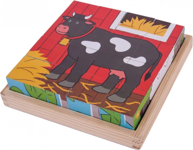 Ogni rotazione del cubo rivela una parte di una nuova scena – i bambini comporranno un gallo, una mucca, una pecora e altri motivi della fattoria. Un solo gioco, divertimento moltiplicato per sei.