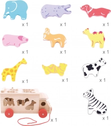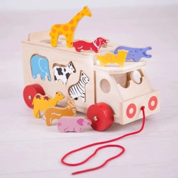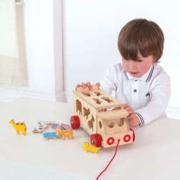 - Camion di legno da traino e gioco di inserimento forme con animaletti